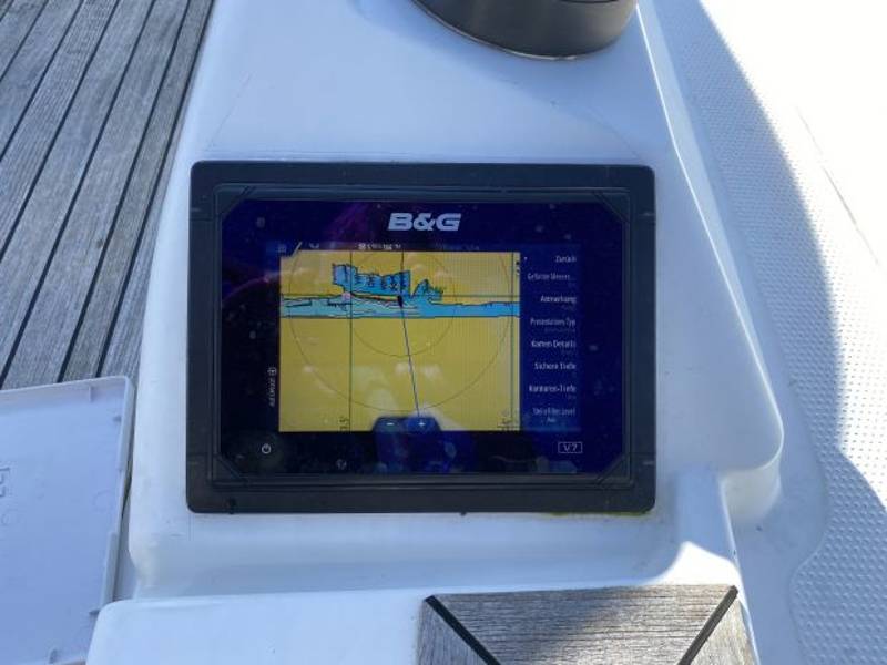 The roller mainsail and the self-tacking jib can be operated from the cockpit using the self-tailing winches. The steering wheels are equipped with autopilot. From the cockpit you have a Raymarine chartplotter, speed gauge, depth gauge, wind meter, GPS and compass at your disposal.