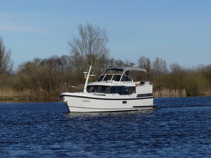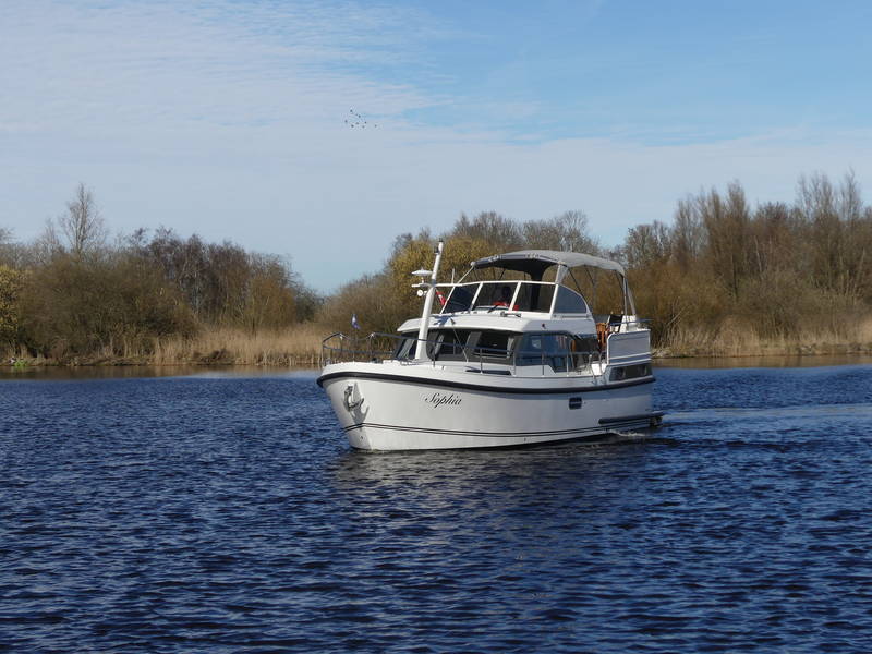 This Linssen has perfect sailing characteristics and is very manoeuvrable. You can hardly hear the quiet and very economical diesel engine from the top deck.
