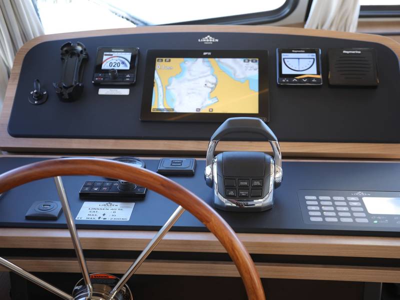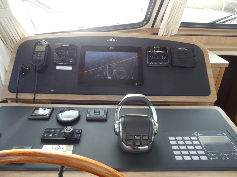 You can easily operate this Linssen Grand Sturdy 35.0 from the spacious deck, with the bow and stern thrusters lending a helping hand. Present log and indicators are of the Raymarine brand, including: rudder angle indicator, depth gauge and speedometer, GPS, log and chartplotter autopilot.