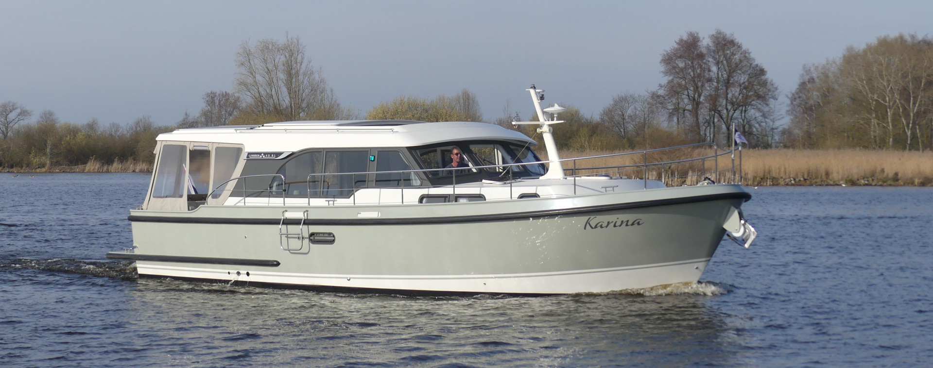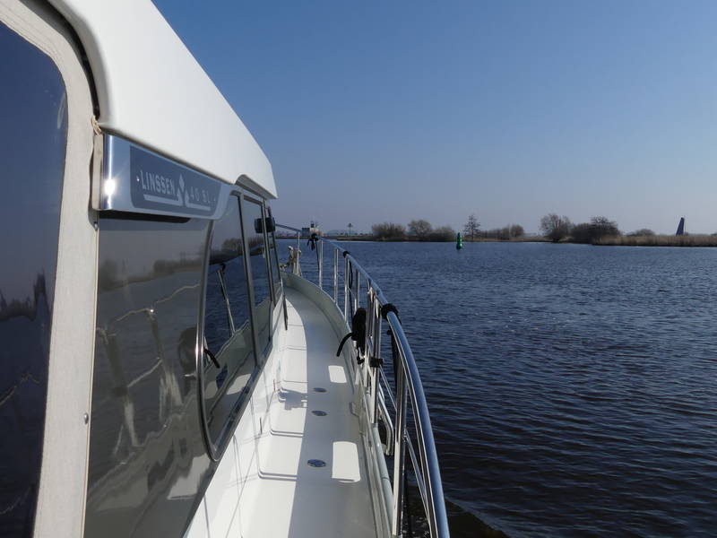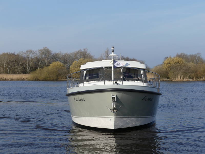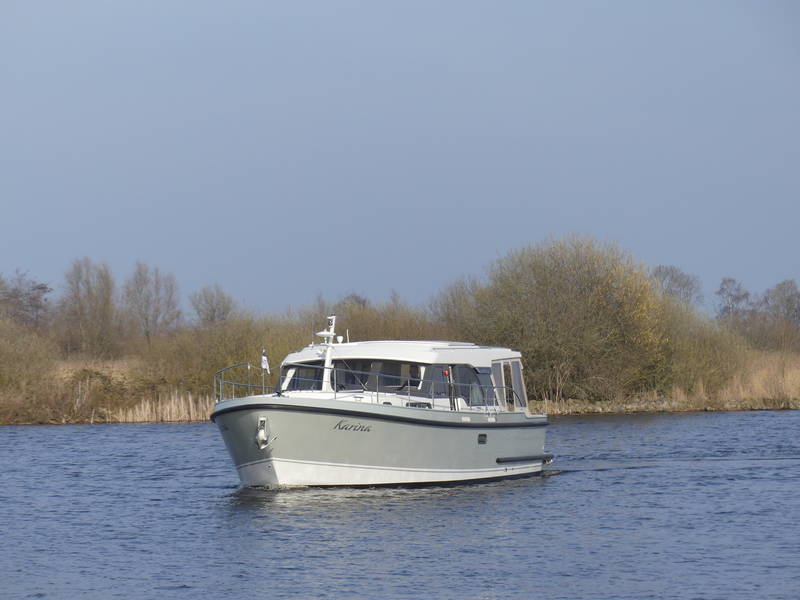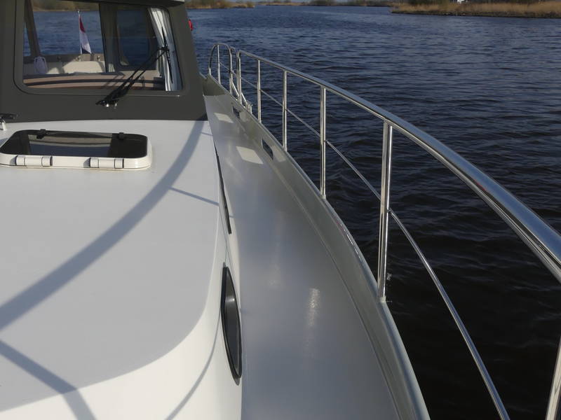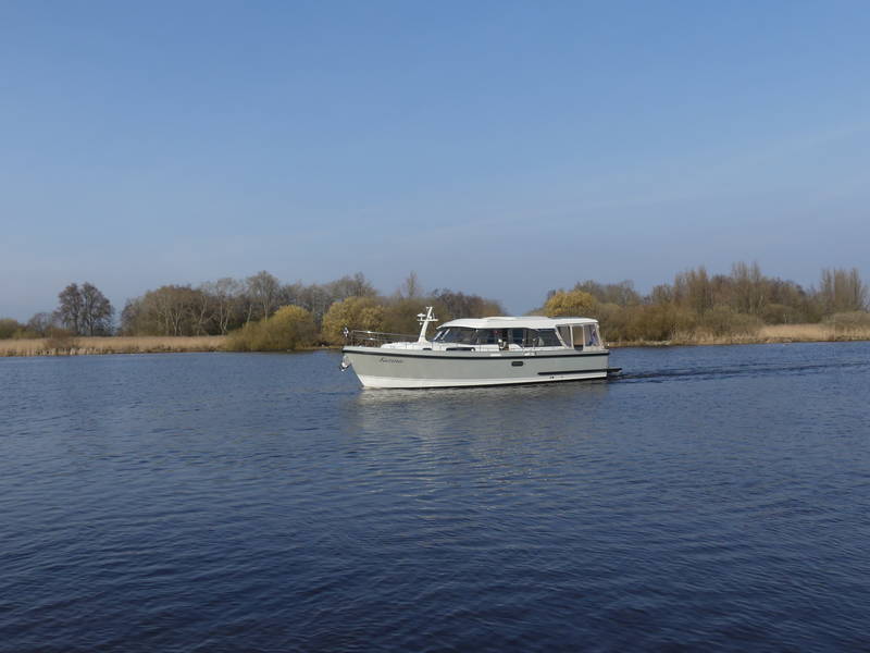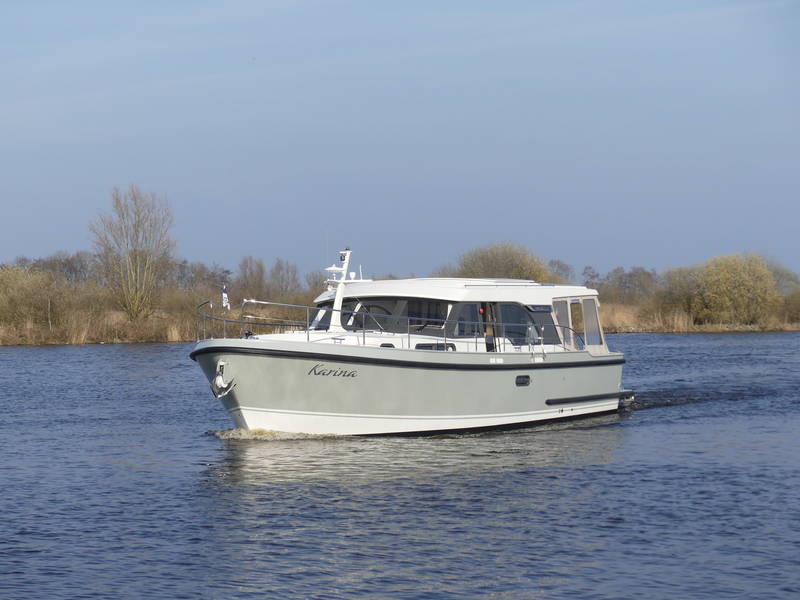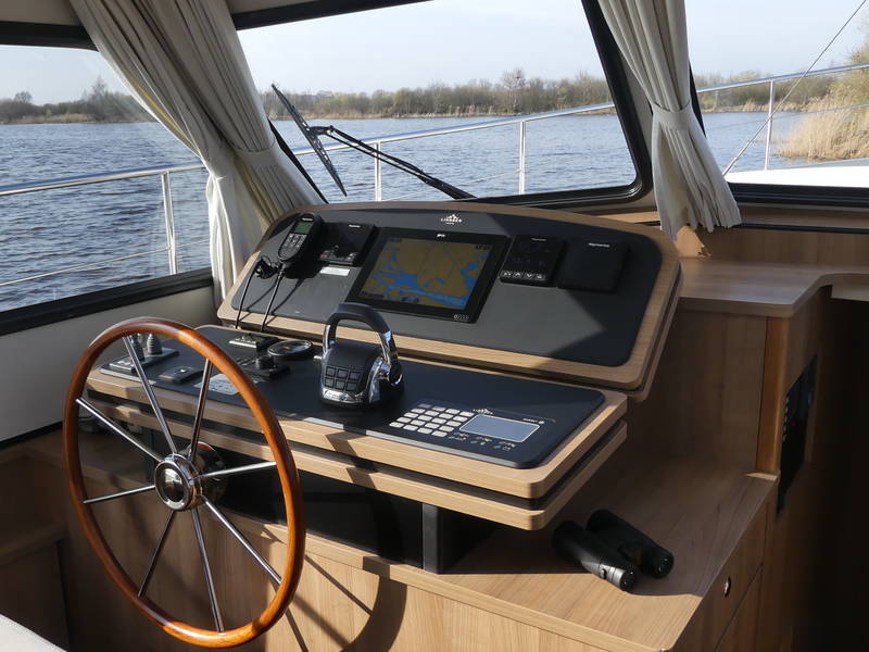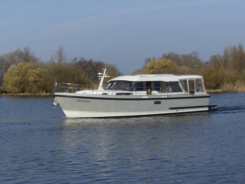 This Linssen has perfect sailing characteristics and is very manoeuvrable. You can hardly hear the quiet and very economical diesel engine from the top deck.