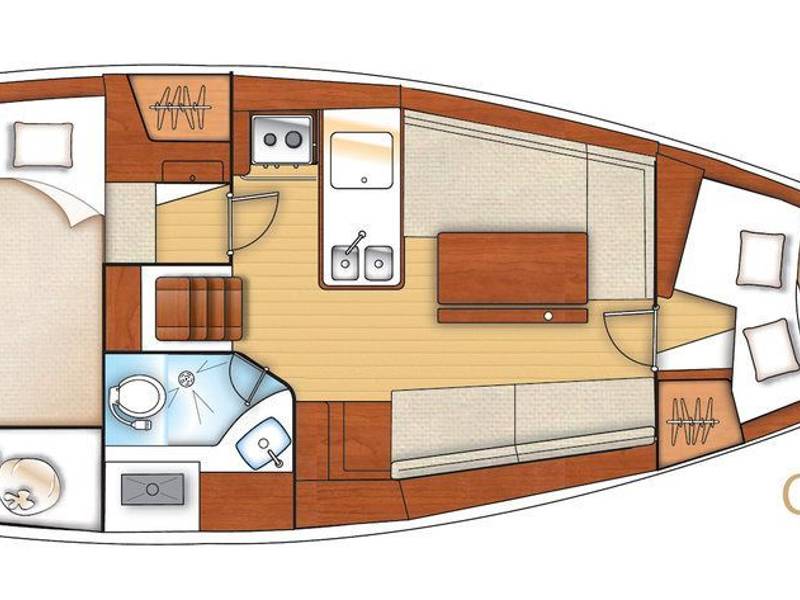 Modern ship and clean lines, this sailing yacht has comfort and functionality! You can rent this sporty sailboat for 2 to 6 people.