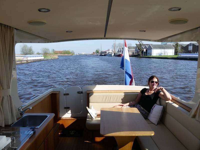 The “Stern” is uniquely equipped with a spacious cabin with toilet and separate shower; spacious storage room and a large double bed. With the air draft of 2.37 metres, this boat can pass safely under every bridge in Friesland and the Netherlands.